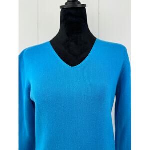 Women's Pierre Cardin Blue Sweater with Crochet Trim, Size L
