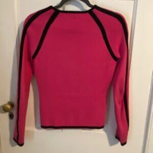 Stretchy 80% cotton, 20% nylon, dark pink, black trim sweater zip cardigan. Excellent condition. Size S