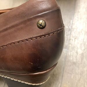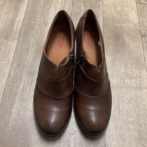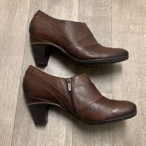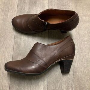 Size 40. Fits size 9.5-10. Gently used. Zips up on the sides. 2.75” heel. Brown color. Cushioned footbed