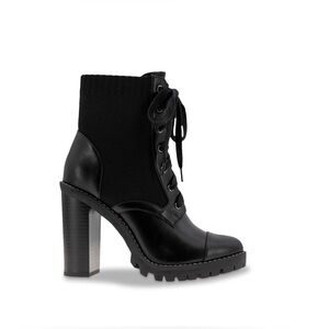 The BCBGeneration Pilas with a stretch-knit shaft and sturdy block heel add contemporary elements to a chic combat bootie that will command the attention of your onlookers. 3.8" Stacked heel, 1.4" platform