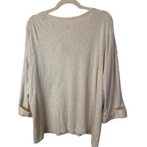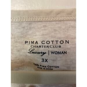 Womens Pima Cotton CHARTER CLUB Top Size 3x Oatmeal Heather Gray V-Neck Cuffs