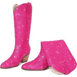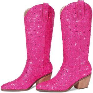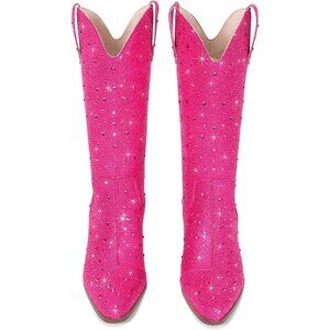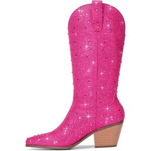 FASHION STYLE Sparkly rhinestone add a touch of glamour and sparkle to these western boots. These mid-calf boots offers a versatile style that pairs well with jeans, skirts, or dresses.