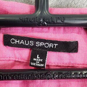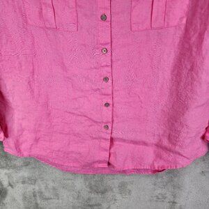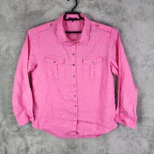 Womens Pink Chaus Sport Linen Shirt Button Up Long Sleeve Pockets Size L