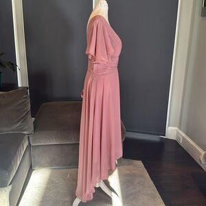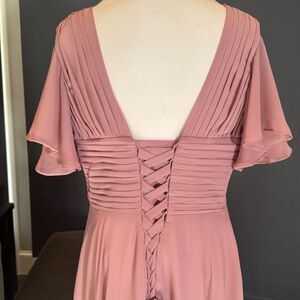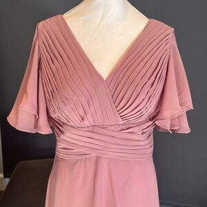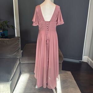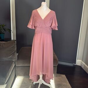 Women’s Pink Chiffon Flutter Sleeve Bridesmaid Formal Dress Corset Back Size 12