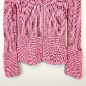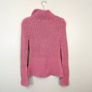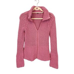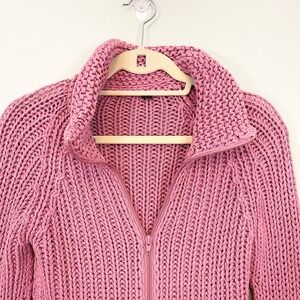 Women's Pink Cotton Blend High Neck Long Sleeve Knitted Front Zip Sweater Large