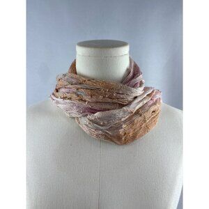 Add a touch of elegance to your wardrobe with this versatile knit and mesh scarf, perfect for all seasons. The soft blend of pink, cream, and peach hues complements any outfit, making it an ideal fashion accessory.