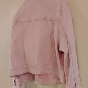 Elevate your style with this chic pink denim jacket. Perfect for layering, it adds a pop of color to any outfit.