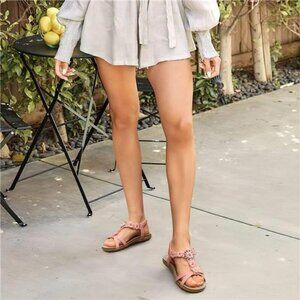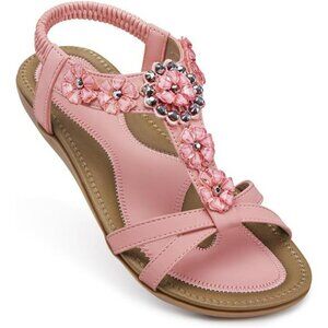 Womens Pink Flat Sandals Dressy Summer Boho Ankle Strap Comfort Walking Shoe