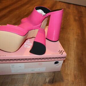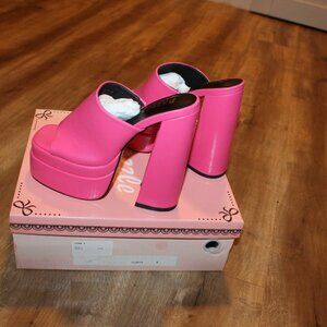Women's Pink Fuchsia High Heel Platform Sandal Mules