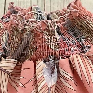 Women's Pink Grey Floral Blouse Sleeveless Size Medium Ruffle Neck Polyester