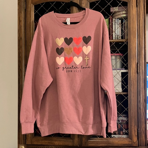 Cozy and stylish pink sweatshirt featuring a charming heart design. Perfect for casual outings and keeping warm.
