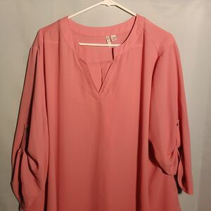 Women’s Pink High-Low Tunic Blouse – Roll Tab Sleeves – Size 22/24W