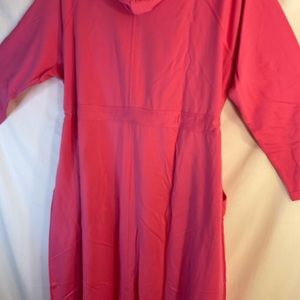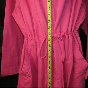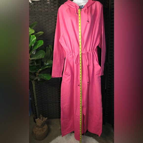 Stay cozy in this stylish pink hooded robe, perfect for lounging at home.
