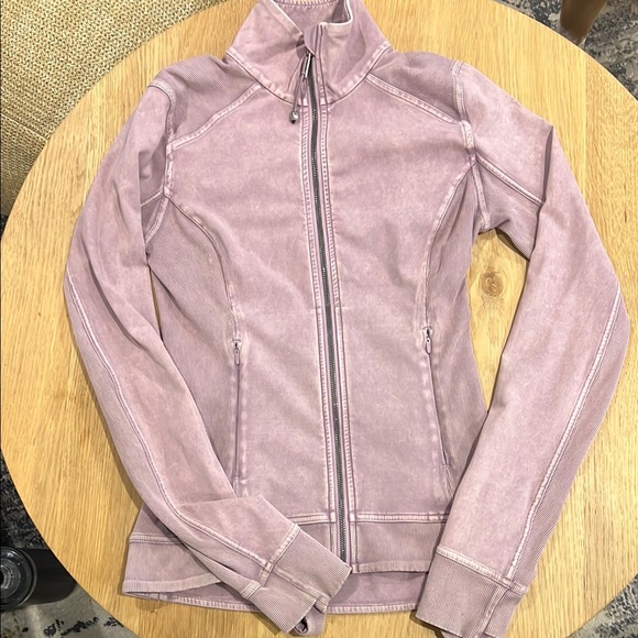 Pink mineral washed jacket . Thumb holes and textural details. Front zip pockets .