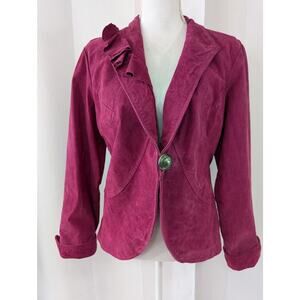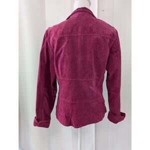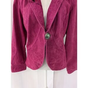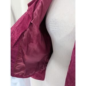 Elevate your style with this chic pink leather jacket. Perfect for adding a pop of color to any outfit.