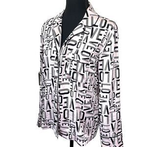 Women's Pink Love Print Button Up Sleep Shirt Sz XS playful feminine cozy