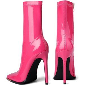 Comfy Ankle Booties upper with mirror PU, lightly cushioned footbed, soft and comfortable lining provide support and cushioning, block high heel and rubber outsole for excellent traction and stability.
