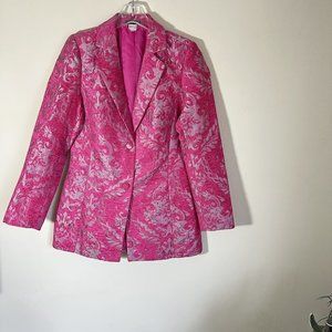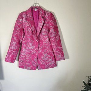 Elevate your style with this chic pink patterned blazer. Perfect for any occasion, this jacket adds a touch of elegance to your wardrobe.