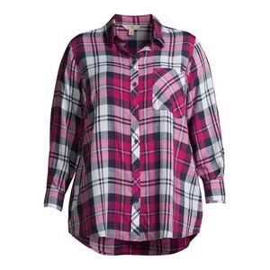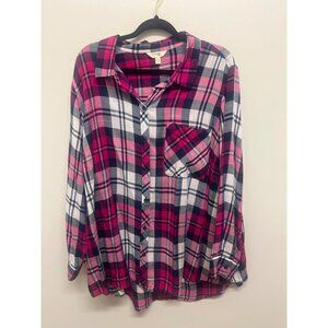 Womens Pink Plaid Button-Down Shirt By Terrys Studio Long Sleeve & Collared Si
