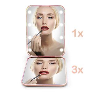 Women's Pink Pocket Mirror,1X/3X 2-Sided LED Compact Portable, Folding, Handhel