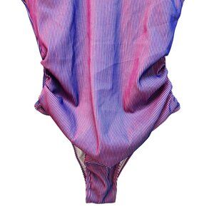 Womens Pink Purple Striped One-Piece Swimsuit Double Straps Back Cutout Size L