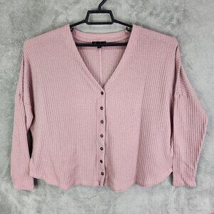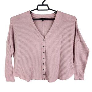 Womens Pink Rachael Knit Cardigan Sweater V-Neck Button Up Long Sleeve Size M