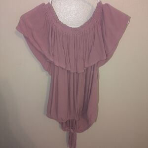Elegant pink ruffled top perfect for any occasion. Soft fabric and stylish design make it a must-have in your wardrobe. Can be worn off the shoulder or on.