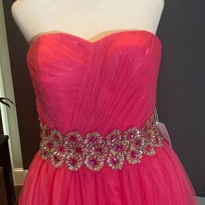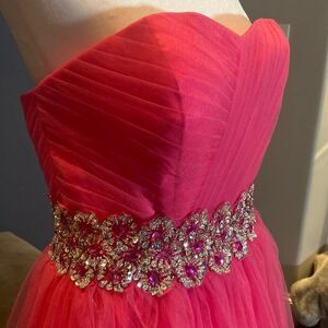 Women’s Pink Short Homecoming Prom Party Dress Sparkly Waist Band Size 12 NWT