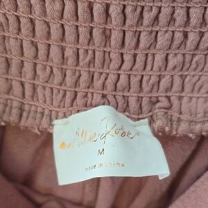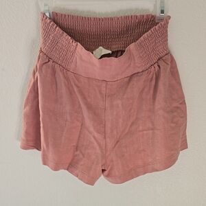 These stylish pink shorts feature a comfortable smocked waistband, perfect for casual outings. Enjoy a blend of fashion and comfort with these versatile shorts.