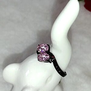Women's Cocktail Ring, Two Pink CZ Stone Gems and Red Side Accent Stones. Black Coated Stainless Steel. Hypoallergenic, Beautiful Sparkling Ring. High Quality Jewelry. Shipped Fast from a Smoke Free Home.
