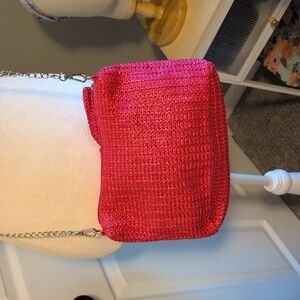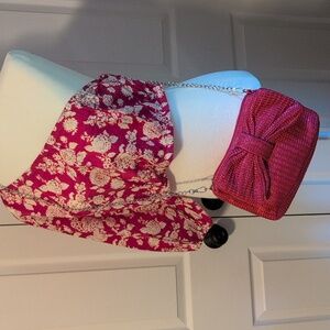 Women's Pink Straw Bow Clutch Handbag NWOT