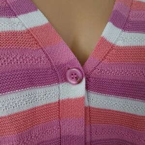 Womens Pink Striped Knit Button Front Cardigan Half Sleeve Sweater Casual Modest