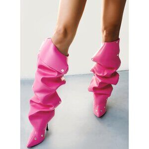 Slouchy shark boots style: These denim thigh-high boots from KaroNairy feature a slouchy shark boots style that is perfect for any fashion-forward woman looking to make a statement.
