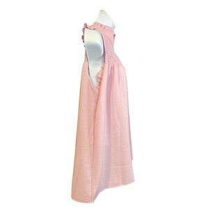 Womens Pink Tunic Top XL Smocked Sleeveless Ruffle Trim Pleated Y2K Boho