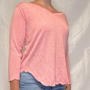 Elevate your wardrobe with this stylish pink V-neck top. Perfect for any casual outing. Size medium. Nally and Millie brand. Excellent condition. No flaws.