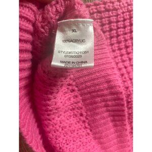 Womens Pink V-Neck Waffle Knit Sweater XL Acrylic Comfort Stretch Warm