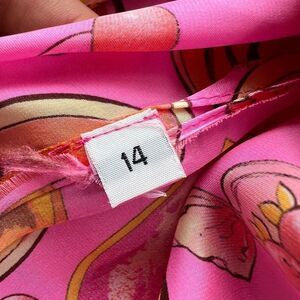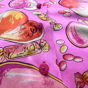 Womens Pink Valentines Hearts And Candy Print Long Sleeve Button Up Top Size 14