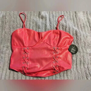 Women's Pink Vegan Leather Corset-like Cropped Spaghetti Straps Top Sz. L NWT