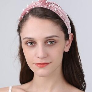 Adorable and trendy get you out the door with no fuss. Women’s Pink Velvet Faux Pearl accented headband in a twist knot style. Dress up any daytime or evening look .