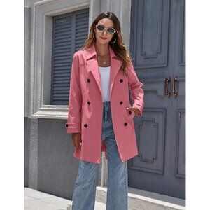 Women's Pink Waterproof Trench Coat Classic Lapel Outerwear Coat with Belt