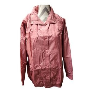 Women's Pink Windbreaker Jacket Size L Snap Front Lightweight Spring Layer