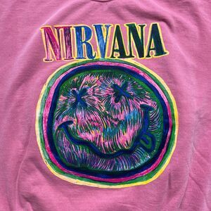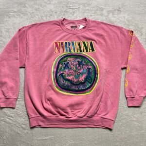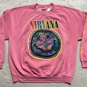 Womens Pink XL Crewneck Nirvana Smile Face Oversized Comfy Sweatshirt Pullover