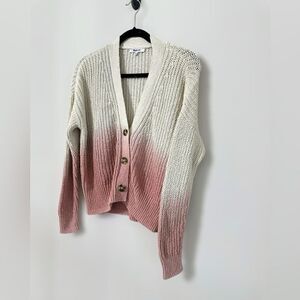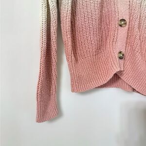Stay cozy and stylish with this elegant pink and cream cardigan sweater. Perfect for layering, this sweater adds a touch of warmth and sophistication to any outfit.