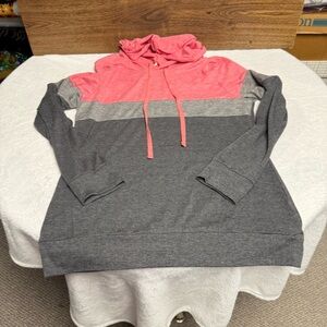 Stay cozy and stylish with this women's pink and gray hoodie top. Perfect for casual outings and relaxed days. A few imperfections on the back.