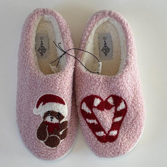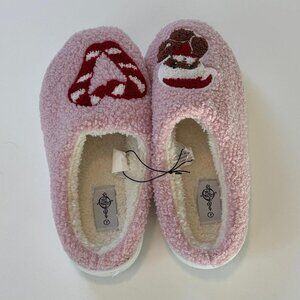 Sole Mates Cozy Pink Sherpa Slippers with Holiday Design 7 NWOT