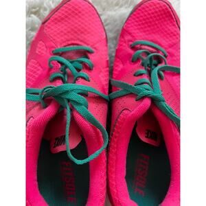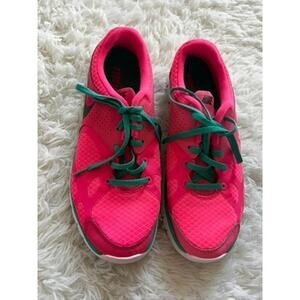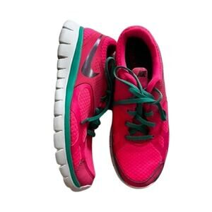 Get ready to run in style with these pre-owned Nike Flex Run trainers! These stylish sneakers feature a vibrant pink and green colorway, perfect for adding a pop of color to your workout wardrobe. Designed for comfort and flexibility, they're ideal for running, training, or everyday wear. They have a little wear but still have some life left in them.