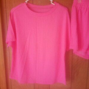 Women's Pink pullover short sleeve top elastic waist shorts Short Set Size S