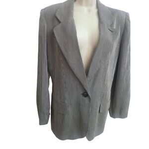 Women's Pinstripe Blazer Size 10 Black White Classic Professional Plus Chic