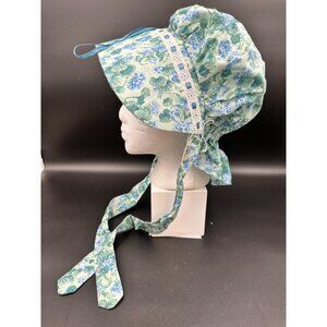 The top of the bonnet looks unfinished. There is a pin holding down the ribbon. I'm not sure if it needs anything but wanted to point it out. Please message me with any questions. • Adjustable tie straps for secure fit • Beautiful floral pattern • Lightweight and breathable • Lace trim detail • One size fits most • Ideal for costumes and reenactments Experience the charm of a bygone era with this exquisite floral bonnet. Perfect for historical reenactments, cosplay, or adding a vintage touch to your wardrobe. E4