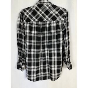 Plaid oversized button down blouse. Long sleeve shirt: black, white and grey. Bought from Nordstrom Rack, only worn once but the lining on the inner corner of the left lapel has unraveled a little as shown in last photo (does not actually go through the garment- only the inside).